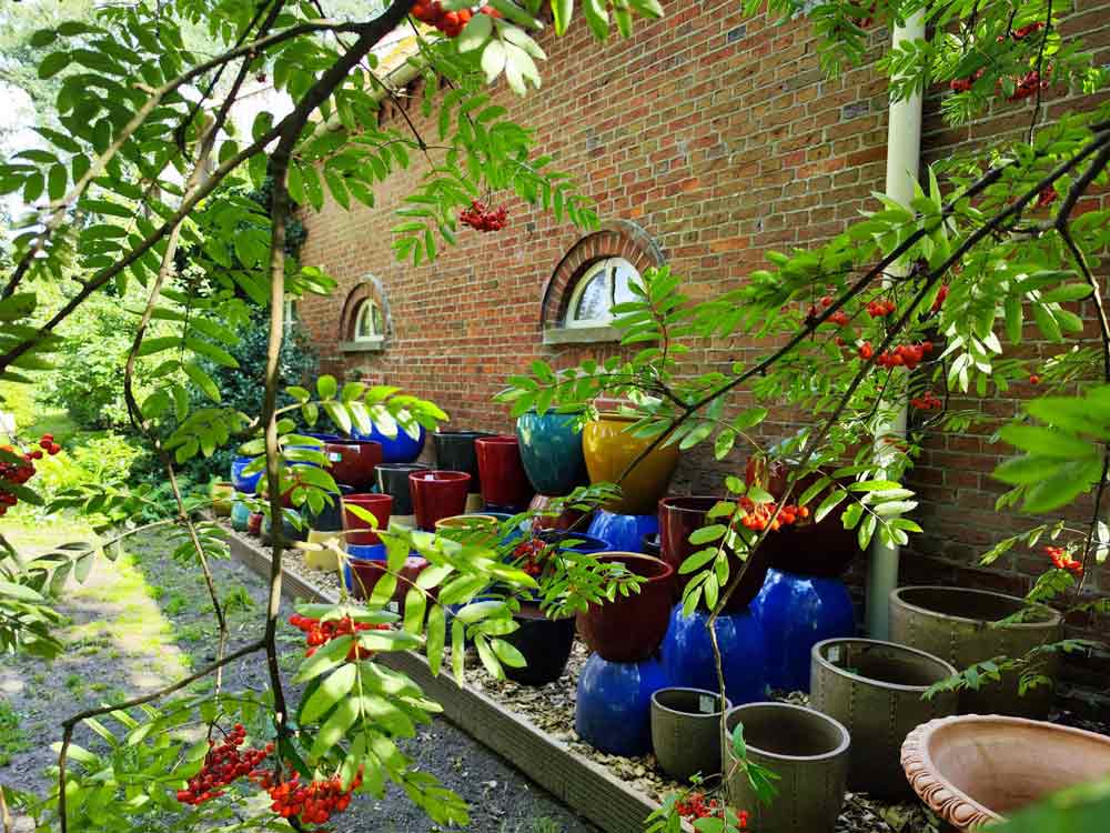 Bunte Terracotta Keramik Gefäße mit 5 Jahren Garantie auf Frostbeständigkeit.