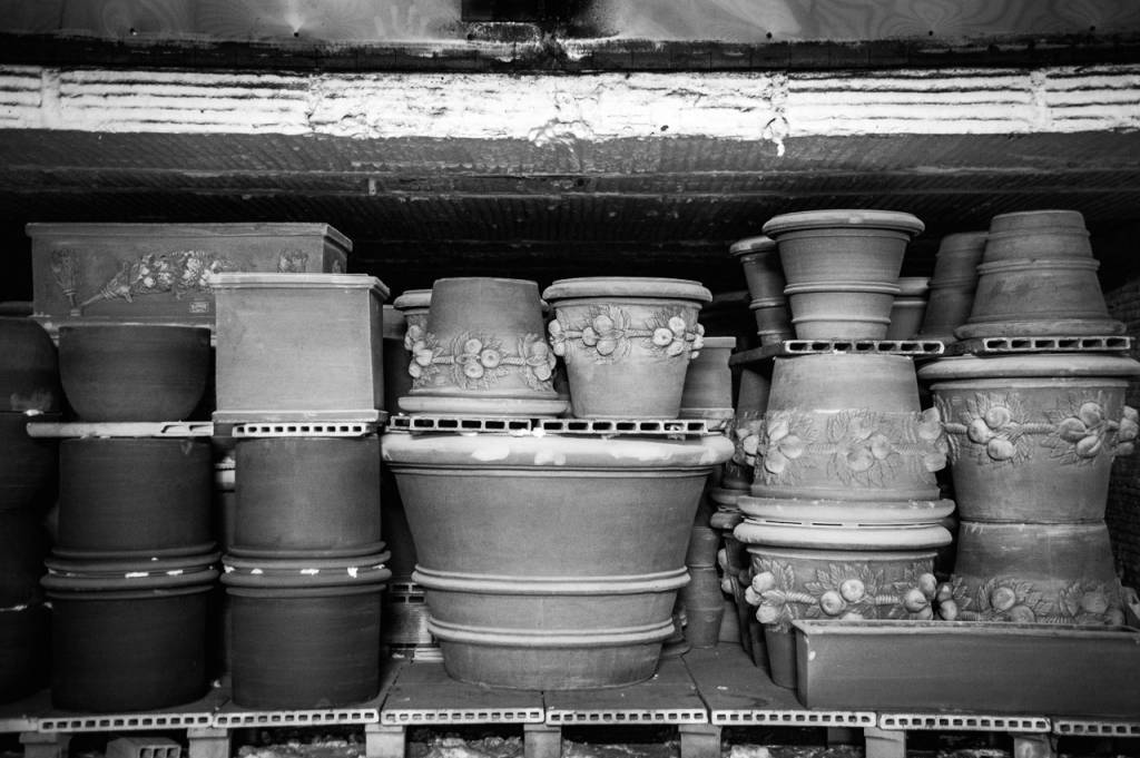 Trocknung der Terracotta aus Impruneta. Der fertige Topf ist dann bereit für die Trocknung. Das Wasser verdunstet langsam und die Dimension des Objekts vermindert sich um circa 10%. Die Dauer des Trocknungsvorgangs hängt von der Jahreszeit und vom Ambiente in dem sie vollzogen wird ab.