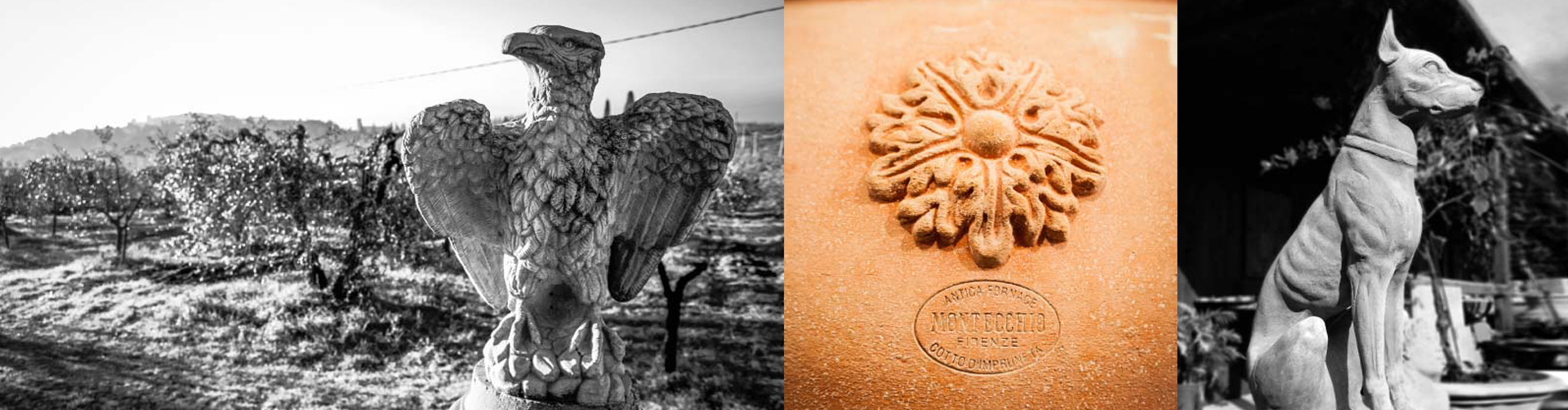 … unsere Produkte aus Impruneta-Terrakotta werden immer noch im Herzen dieses alten Ofens hergestellt: Das Verfahren wurde durch jahrhundertelange Erfahrung gefestigt, das Ergebnis sind einzigartige Stücke von großem künstlerischen Wert, die mit zeitlosem Charme und Schönheit ausgestattet sind. Die Terrakotta von Montecchio hat ihre Tradition in den gleichen Formen, wie sie die Familie Medici auswählte um die Gärten ihrer Villen zu schmücken: nicht nur Krüge, Amphoren, Becken, Vasen und Vasenhalter, sondern auch Statuen, dekorative Motive und Einrichtungsgegenstände, sind inzwischen selbst und international berühmt geworden und haben alle prestigeträchtigsten Märkte erobert.