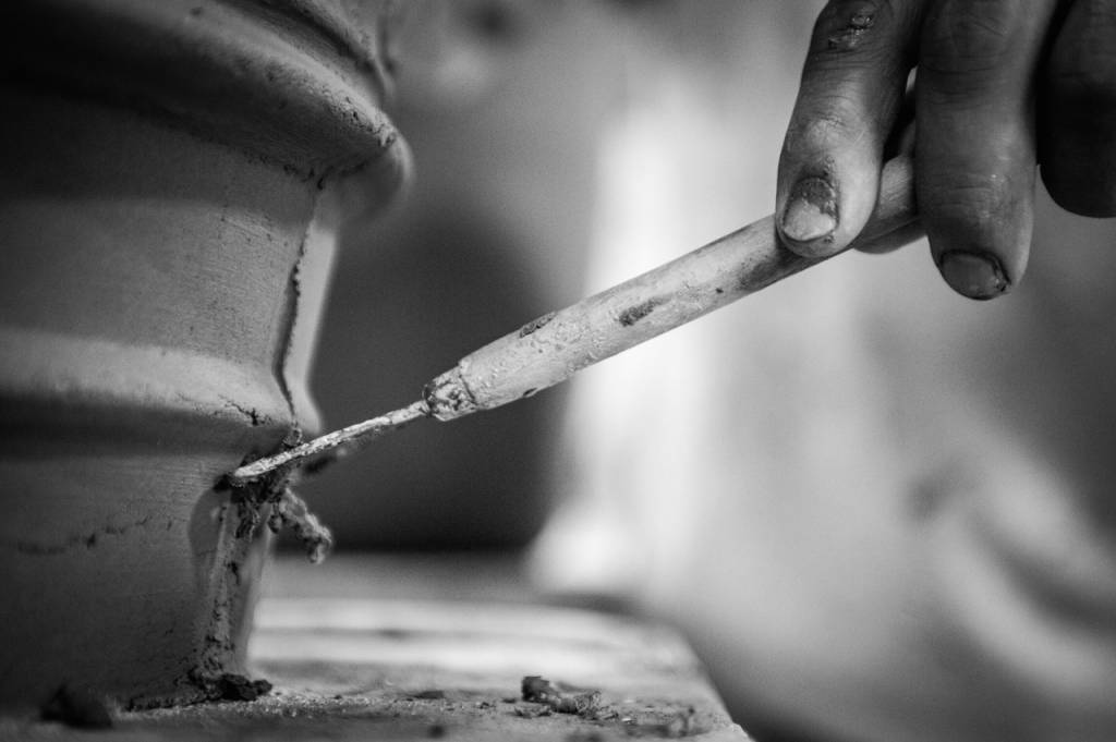 Danach wird der Ton modelliert. Dabei werden verschiedene Techniken angewandt: Der „ Calco“ ,der „Guscio“ , bishin zur grossen Technik des Aufbaus von Hand ,die jedem gefertigten Teil Unregelmässigkeiten verleiht und es damit zu einem Unikat macht. Im Gegensatz zu anderen Gegenden wird in Impruneta der Aufbau von Hand nicht auf der Drehscheibe vollzogen, sondern es wird nach der antiken Methode des „Colombino“ gearbeitet. Hier dreht der Töpfer um den Topf und baut spiralförmig das Gefäss mit aufeinandergesetzten Tonwürsten („lucignoli“) auf.