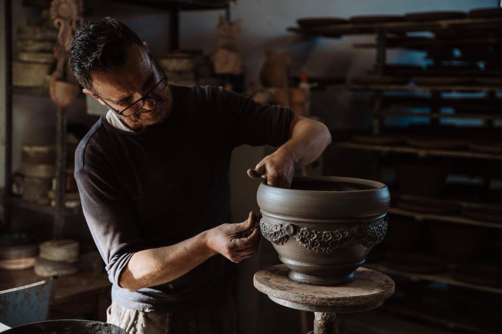 Alessandro Rosselli, Meister der Keramik spezialisiert auf die manuelle Fertigung von Töpfen an der Töpferscheibe und allgemein die Herstellung von Terrakotta - Keramikkunst und Design. Er übernahm die Zügel des historischen Terrakotta-Unternehmens Antonio Masoni, hauchte ihm neues Leben ein und baut eine perfekte Verbindung zwischen der handwerklichen Tradition und der andauernden Suche nach weiteren aktuellen und kreativen Lösungen auf.