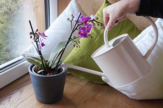Bei jedem 2. Gießen wird der Westland Orchideen Dünger ins Gießwasser gegeben. Während der Ruhephase im Winter wird nur bei jedem vierten Gießen gedüngt.